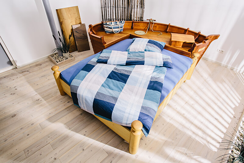Die Massivholzbetten, die in unserer Werkstatt entstehen, werden zum optischen Highlight im Schlafzimmer und zu Ihrem ganz persönlichen Heimathafen. Wir lieben es einfach, mit Holz zu arbeiten, es zu formen und unsere Kunden damit glücklich zu machen.